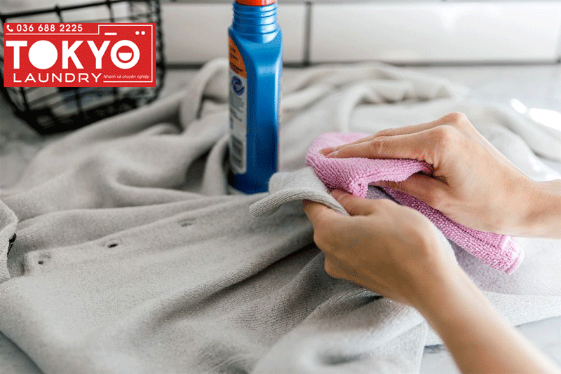 Nếu bạn cần làm sạch đồ len tại chỗ, cách thực hiện khá đơn giản. Trộn một giọt nước giặt quần áo – tốt nhất là loại được thiết kế để giặt đồ nhạy cảm – với nước lạnh để pha loãng, và thoa nước xà phòng vừa đủ lên chỗ bẩn, giữ cho phần còn lại của đồ càng khô càng tốt. Dùng tay thật nhẹ nhàng để xoa bóp nước xà phòng vào các sợi vải, nhưng không chà mạnh vì điều này có thể khiến len bị sờn. Để đồ khô tự nhiên và treo ở nơi thoáng gió để các sợi vải được thông thoáng.